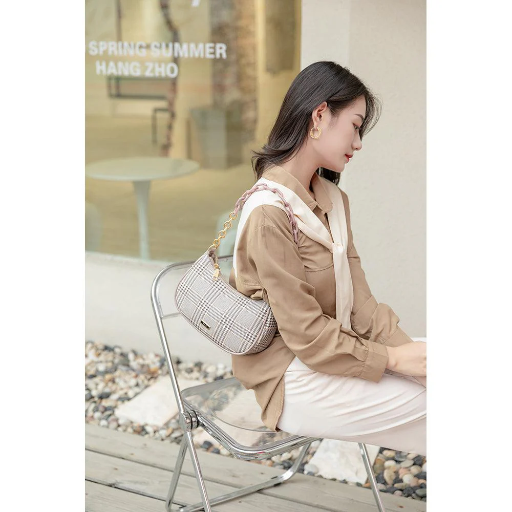 Hadir dengan aksen motif gingham yang super unik dan aksen rantai yang kekinian.Dengan tali panjang yang bisa diatur sesuai kebutuhan makin membuat tampilan mu lebih fashionable..!!!