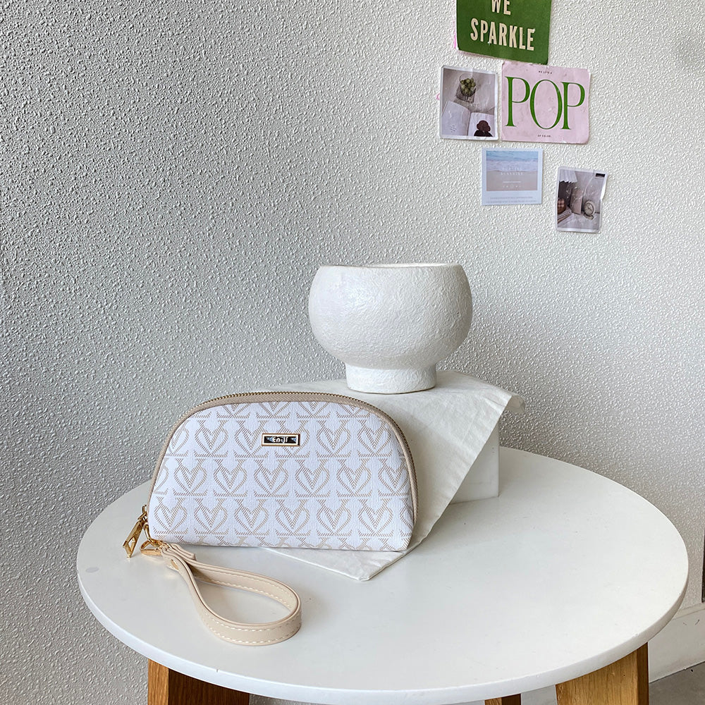 Pouch terbaru dari Enji! Ryuha pouch hadir dengan desain half moon estetik dan aksen motif print detail love yang chic, dikombinasikan dengan warna pastel yang soft kekinian. Tersedia hand strap yang bisa dilepas pasang bisa kamu pakai dipergelangan tangan, so praktis banget girls untuk nemenin aktivitas kamu seharian tanpa perlu bawa tas. Cocok banget nih untuk kamu si anti ribet. Multi kompartemennya cukup muat untuk membawa peralatan kamu seperti smartphone dan dompet kecil (ukuran : P: 11 cm x L : 3 cm x T : 9 cm) atau card wallet kamu. Ryuha pouch bisa banget nih kamu pairing dengan Jihe handbag, look kamu auto makin perfect!