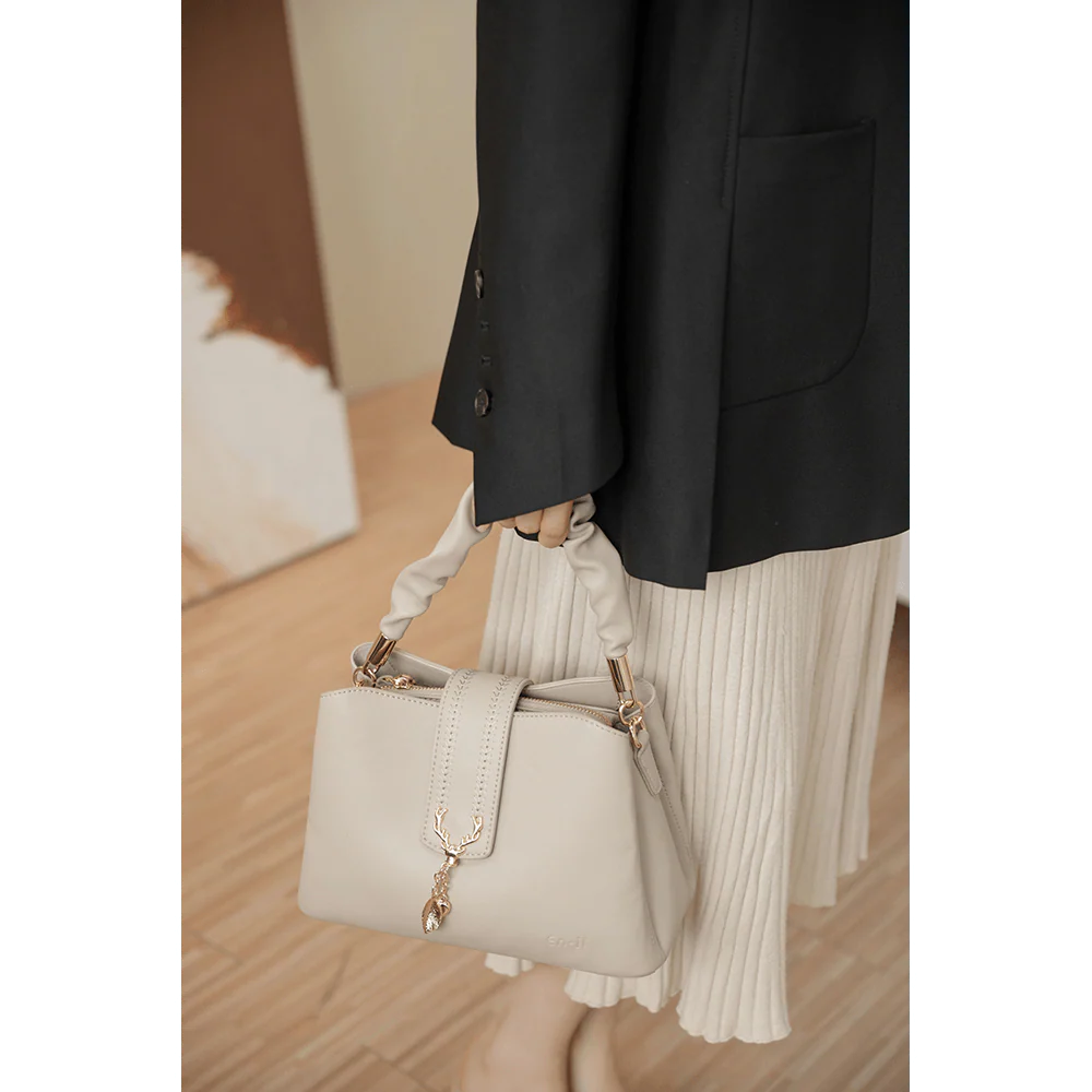Handbag dengan detail kerut pada handle dan aksen bag charm cocok untuk kamu bawa kemana saja dengan tali panjang yang bisa di adjust buat tampilan mu jadi pusat perhatian .